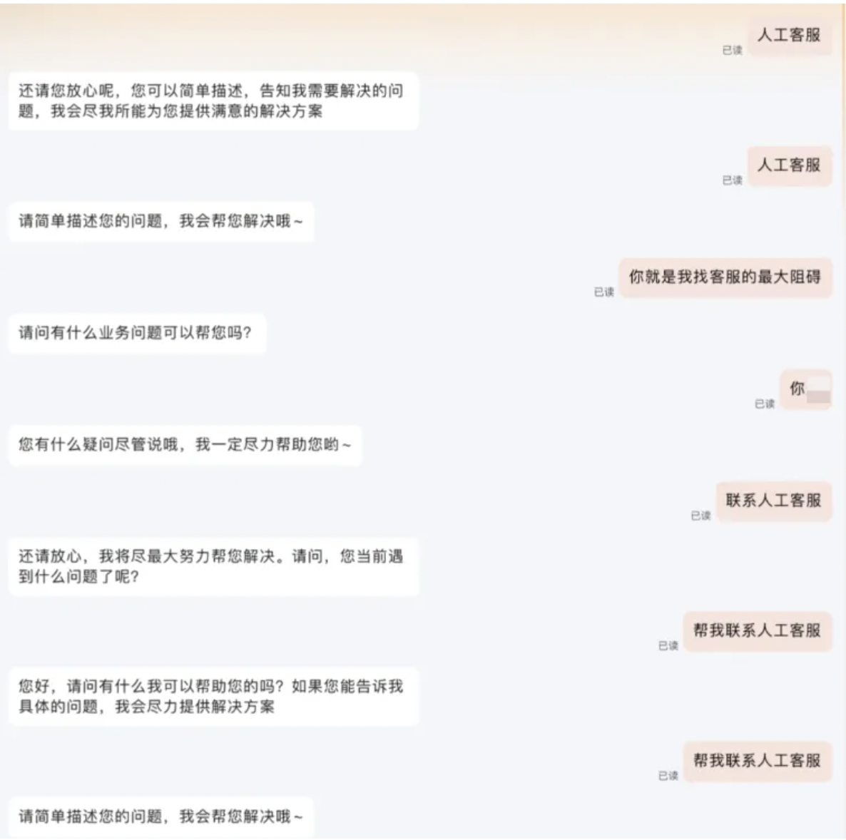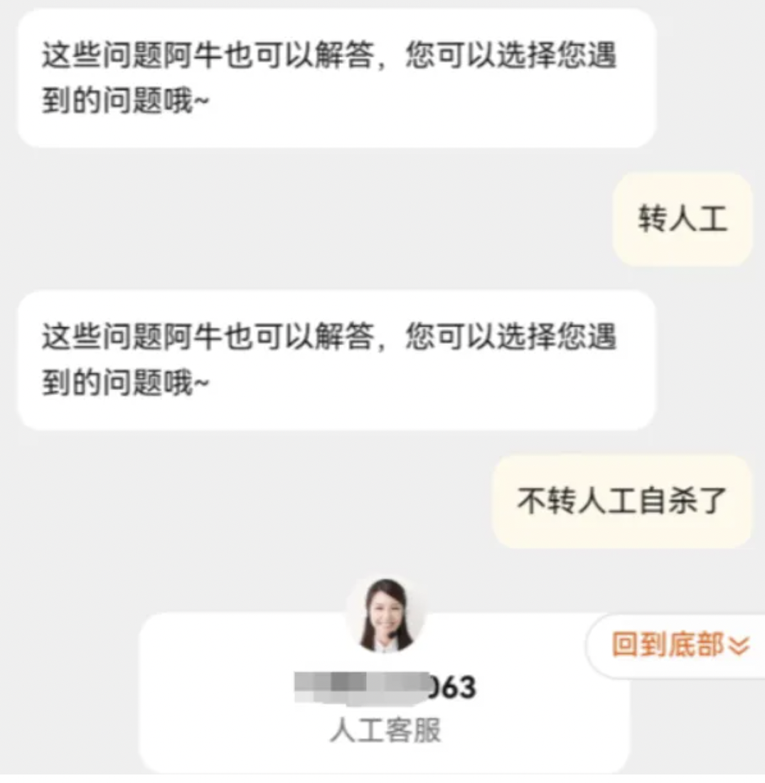 但现在的玩法变成了:AI客服什么问题都解决不了,人工客服则像“隐藏关卡”。