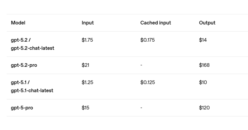 从定价策略来看,GPT-5.2在API层面的价格定在每百万输入token 1.75美元,每百万输出token 14美元,比前代GPT-5.1分别贵了40%。