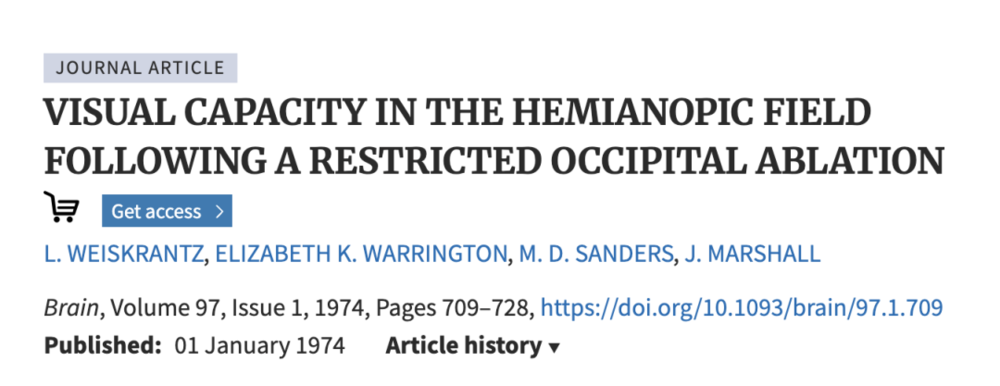 1974年,一项发表在《大脑》(Brain)期刊上的研究聚焦于一位视觉皮层受损的病人,他虽然患有皮层盲(cortical blindness),却仍然能对视觉事件作出反应。研究人员发现,尽管该患者无法通过常规方式“看见”,他却能准确地伸手触碰或反应视觉刺激,能区分垂直线、水平线和对角线,还能辨认出字母“X”和“O”。这表明,即使视觉皮层受损,视觉能力仍然可能保留。该研究的第一作者劳伦斯·韦斯克兰茨(Lawrence Weiskrantz)因此创造了“盲视”(blind sight)这一术语。正是这种“盲视”在我们感觉“有人在看我”但实际上并没有“看见”那个人时发挥了作用。