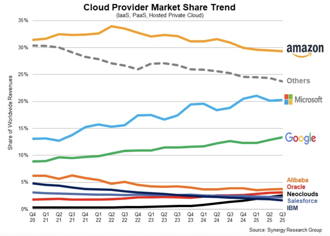 因为如果你从云服务市场份额来看,Oracle是明显属于第二梯队的。