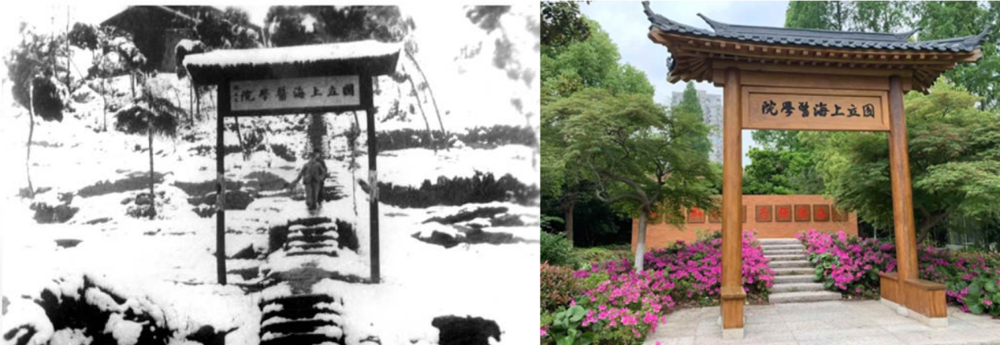 左图:真实的歌乐山时期的上医校舍大门(图源|复旦大学);右图:今天的复制品(图源|作者拍摄)
