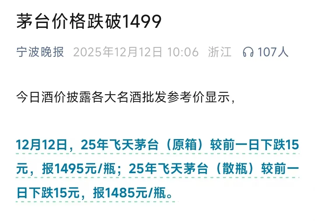 这两个月,茅台跌价几乎就没下过新闻热搜。跌了又跌,跌到只剩一个悬念:究竟会不会跌破1499零售价?