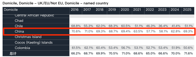 当然还有非常重要的一点是,UCAS统计的是英国几乎所有大学的情况,平均情况并不能代表头部学校。