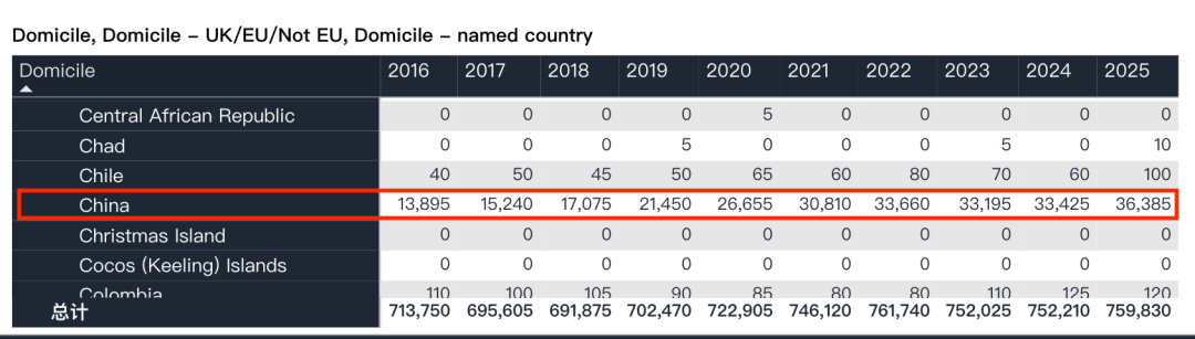 中国大陆申请者为36,385(去年33,425)人,继续刷新申请人数新高。