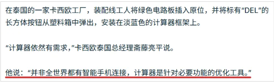 这一点其实卡西欧的泰国分公司总经理也提到过,他说计算器在网络连接不可靠的地区依然广受欢迎,因为它们是为特定用途打造的工具。