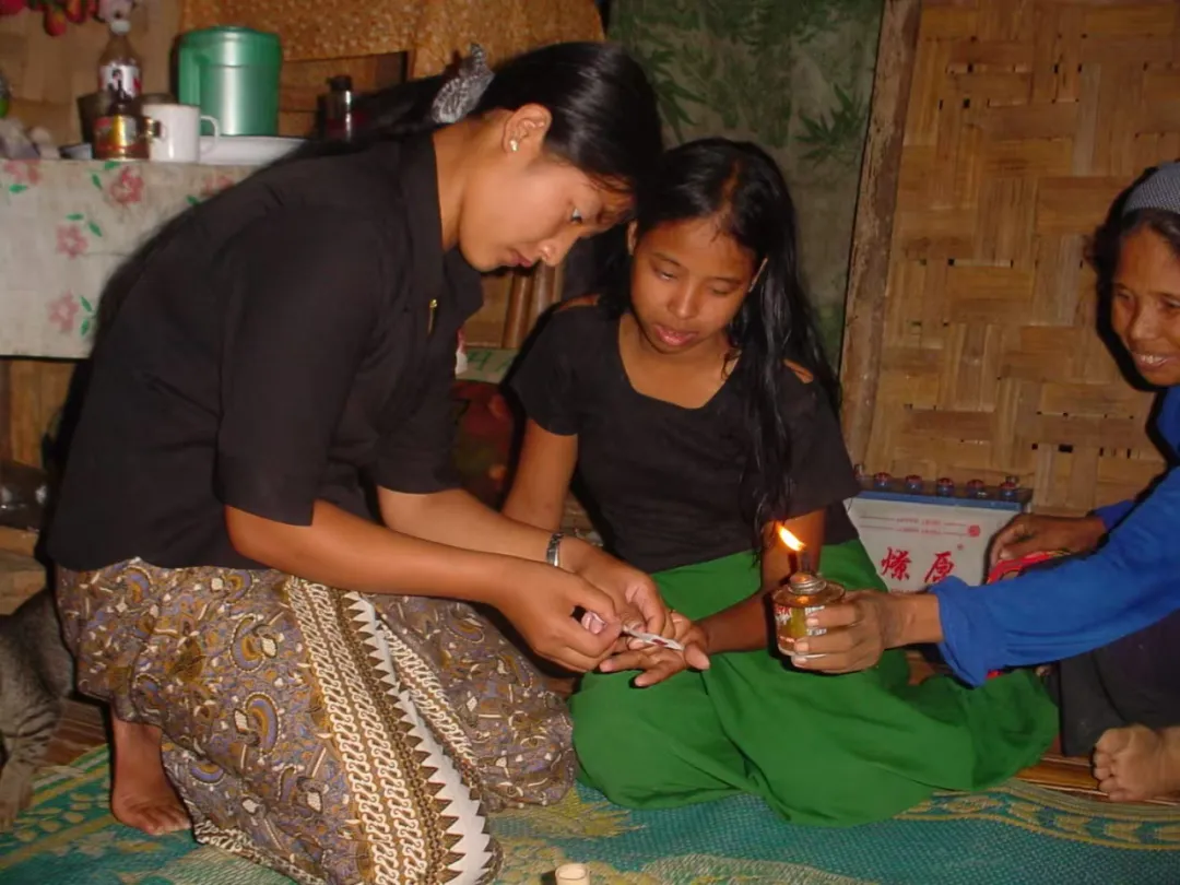 与此同时,她们分娩的时候,有的是自己接生,有的是婆婆或者村寨里生过孩子的妇女帮忙接生。很多时候就是随手从墙上揪一块竹片,一割,脐带就掉了,或者拿旧刀片、旧剪刀把脐带剪掉,所以很容易得破伤风。