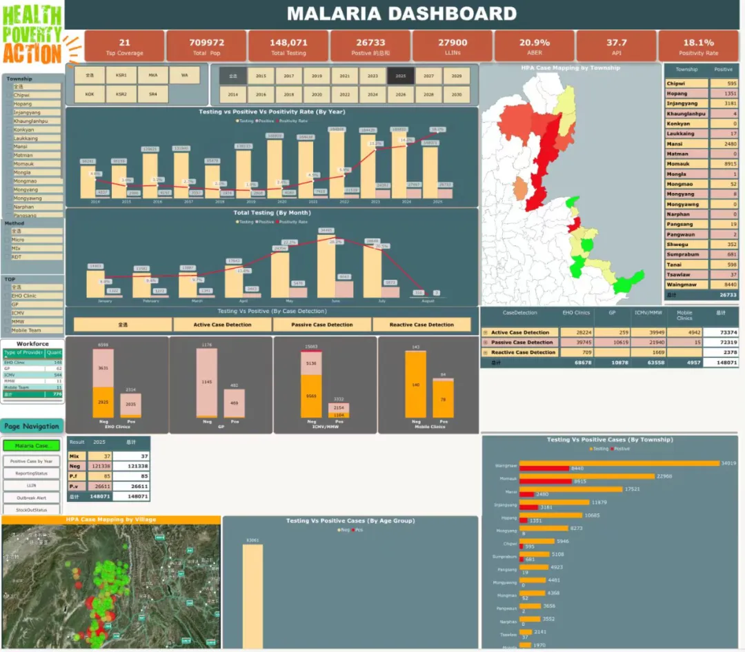过程中我们结构也建起了一个疟疾监测网,能够实时动态显示区域内的疟疾状况。这也回应了当年那个领导问我的“数据有啥用”,在资源匮乏的时候,数据能帮我们调配资源。