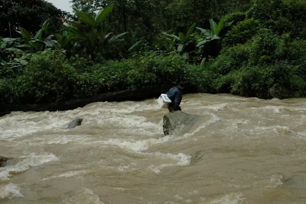 我们去村寨里的时候其实连路都没有,还要趟着水过河,扛着接种箱一路走了过去。到那却没人,你想这是什么感觉。