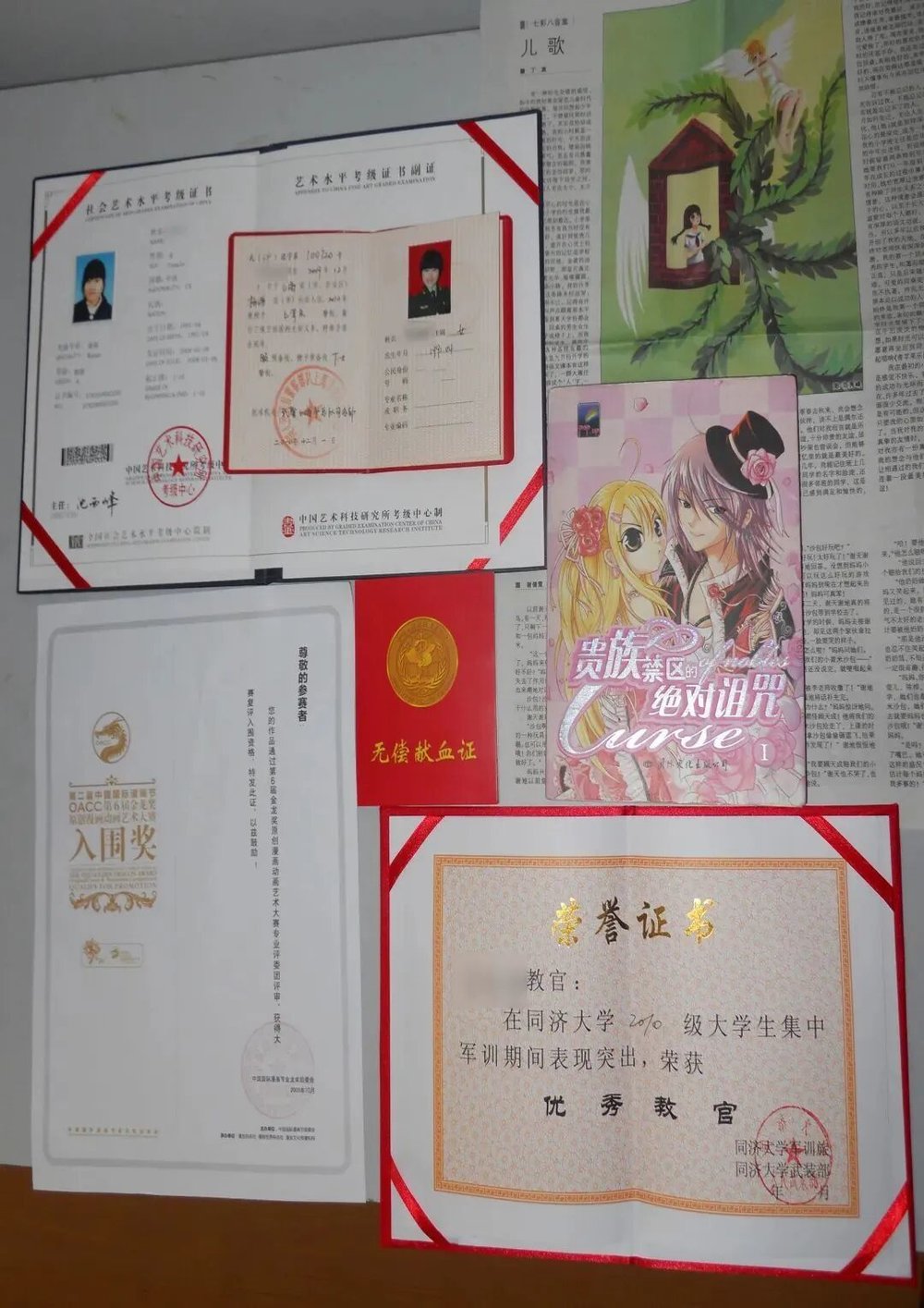 范君获得的漫画奖状。