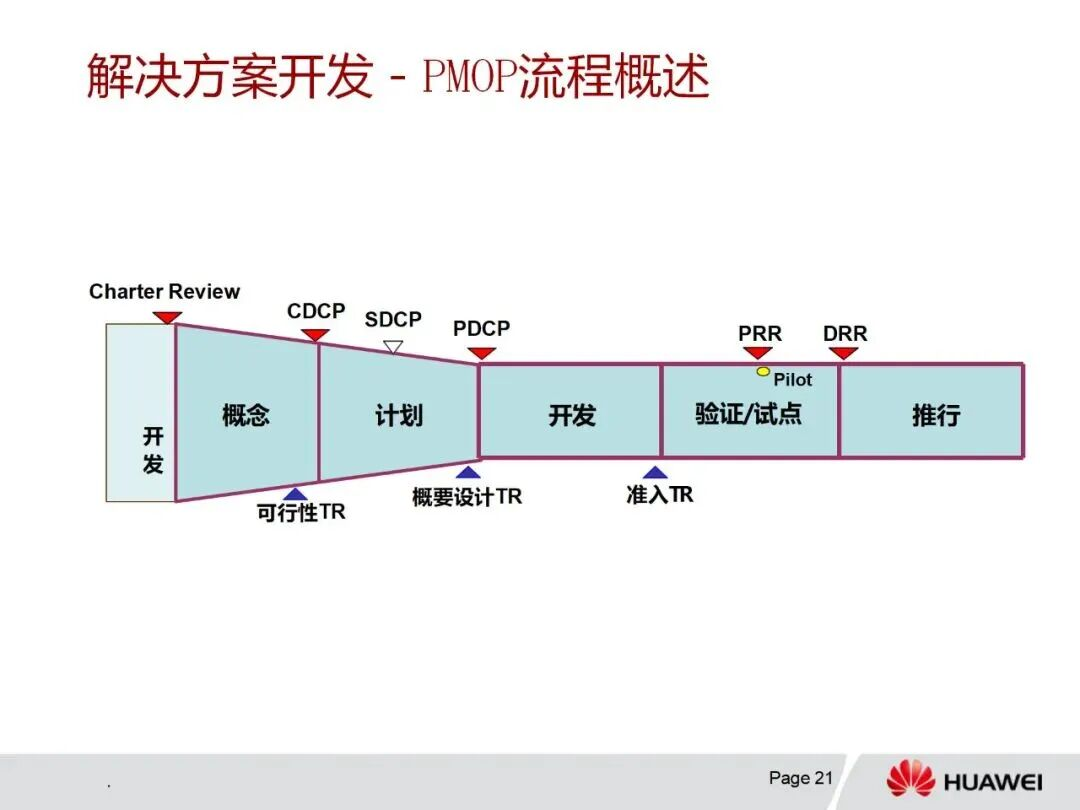 4A架构要通过解决方案项目来落地,华为项目群管理运作流程(Project Management Operation Process,简称PMOP),是BTMS框架中支撑解决方案开发的核心流程体系,为变革项目实施提供标准化路径。