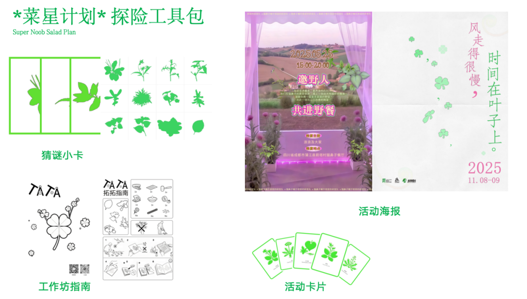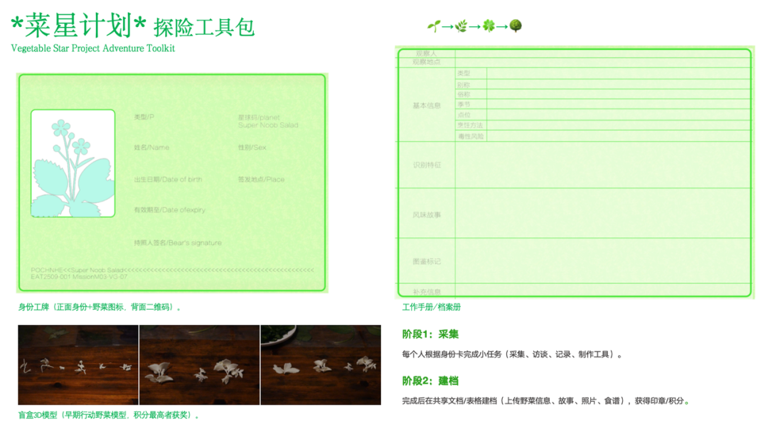 不如看看村里的野菜。决赛项目「乡村参与式饮食游戏」察觉到年轻人对野菜寻宝的探索欲,而各地野菜又都蕴含着在地特色,于是发展出一整套通过野菜玩转乡村的工具包。