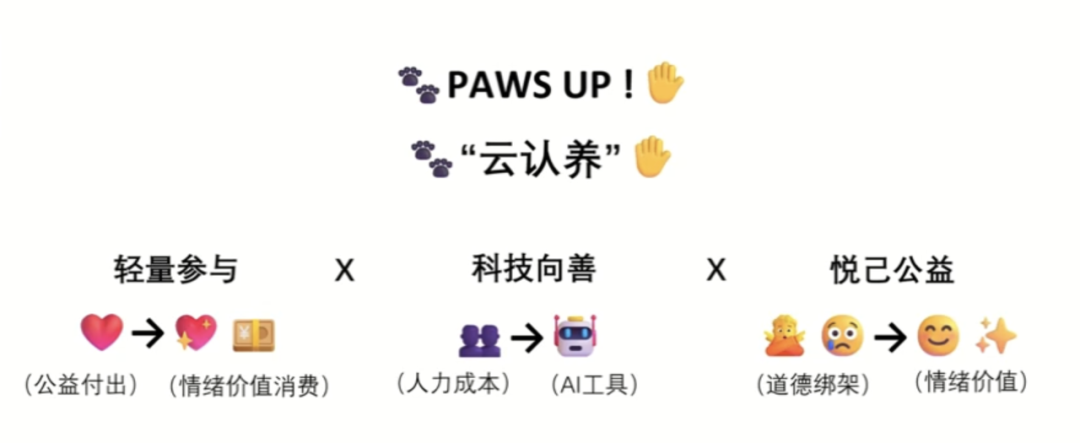 决赛项目「PawsUp爪爪向上」察觉到,目前流浪动物救助公益组织的工作人员其实精神压力都很大,不仅有心理负担,而且不断觉得自己救助不过来。因此,这个小组通过给都市打工人提供“云认养”的方式,邀请更多人以轻量的方式参与到对流浪动物的支持中。这里的小猫也不仅仅是“受助对象”,还是会给打工人发消息,提供“情绪价值”的小可爱。