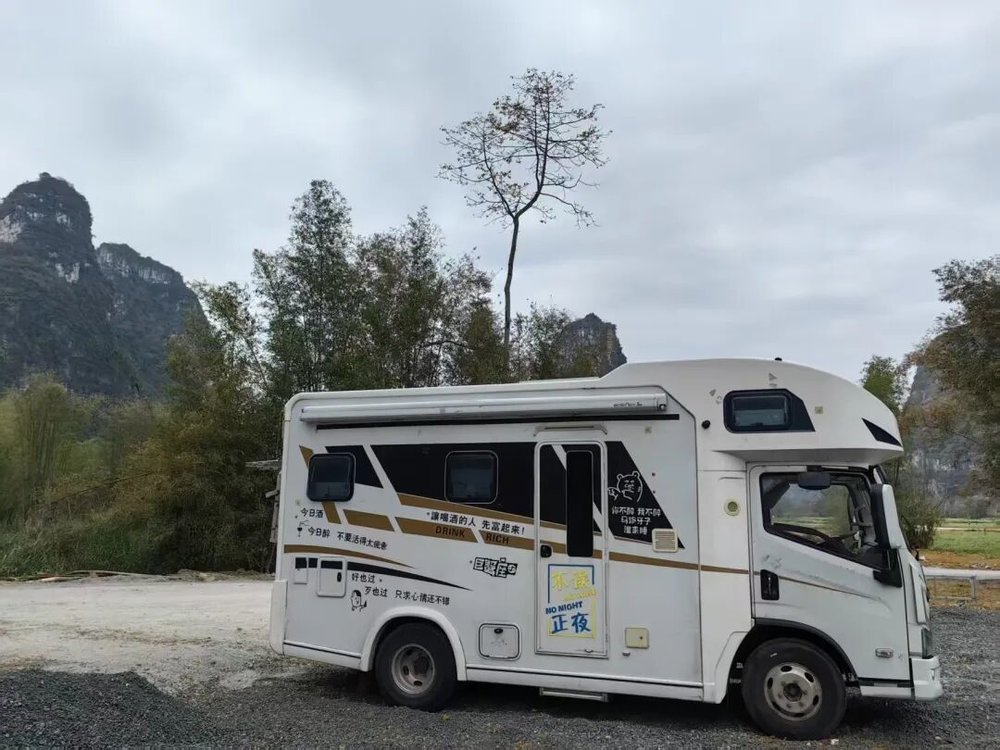但是帐篷也得爬上爬下,在一次摔断手臂后,我们买了380拖挂房车,由此开启房车之旅。