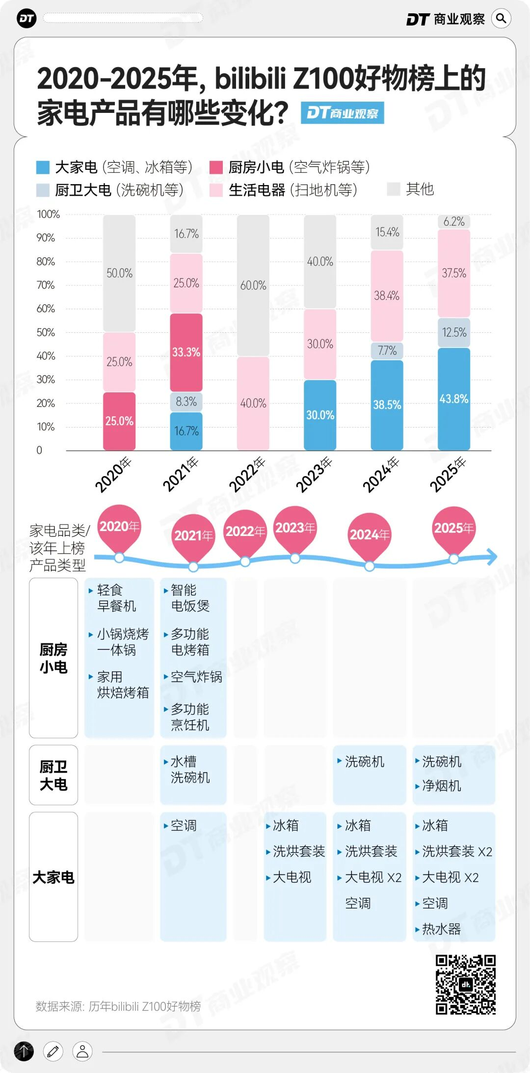 回顾过去6年的榜单,B站年轻人的消费偏好就像一部《普通人的生活升级史》。从以前尝鲜买点好玩的,到现在认真买点有用的,最好是长期管用的。