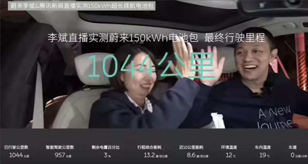 2023年12月17日,蔚来 CEO 李斌亲自下场直播,开着一辆搭载了卫蓝 150kWh 电池包的蔚来 ET7,从上海出发测试续航。