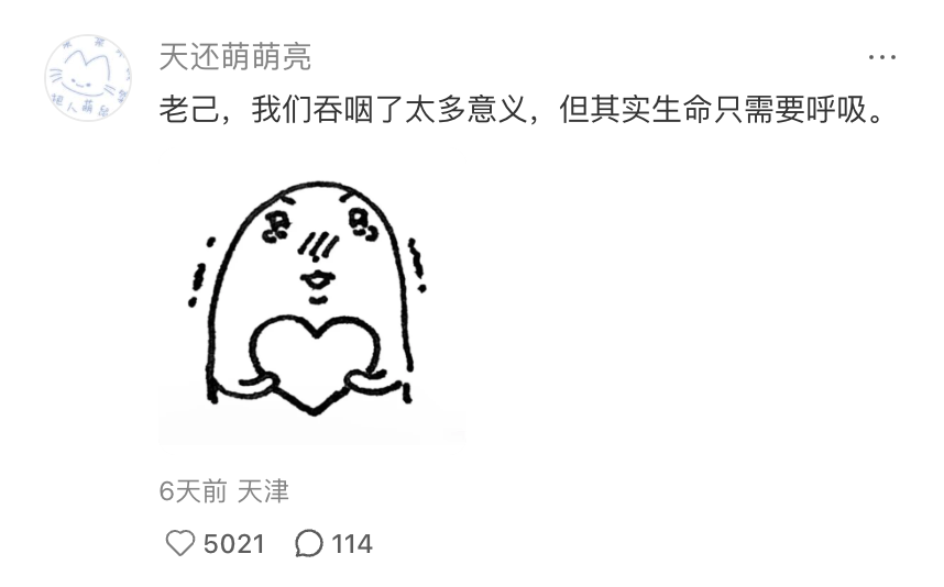 一位网友写下了这样一句话:“老己,我们吞咽了太多意义,但其实生命只需要呼吸。”