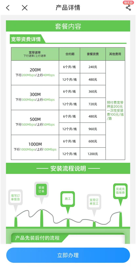 在中国电信App的页面上可以看到,上海地区单宽带产品中,“单宽带1000M套餐”报价是一年1200元,承诺的宽带速度是下行1000Mbps,上行100Mbps。