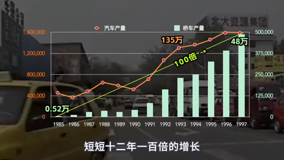 1994年,我国汽车的销量已经创纪录地飙升到了135万辆。而小轿车的销量更是从1985年的5200辆,一路呈指数级飙升,到1997年已经超过了48万辆。