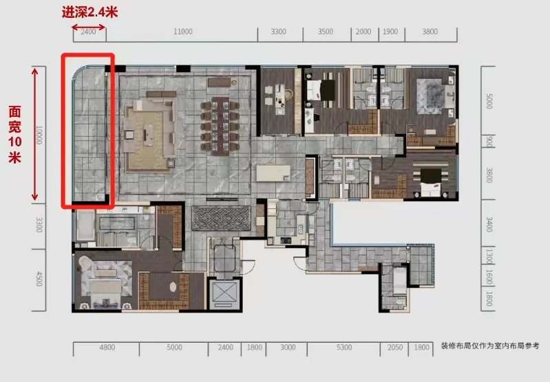 2.4米进深意味着这个阳台能丝滑的容纳4个成年人同时并排在阳台上走秀