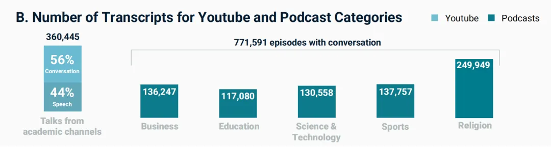 为了更准确地研究这个现象,研究人员在实验设计上颇费了一番心思——他们分析了超过740,249小时的人类语音记录(内容量相当于一个人不眠不休地听上84年)。这些数据涵盖了36万个YouTube演讲视频和77万集播客节目。