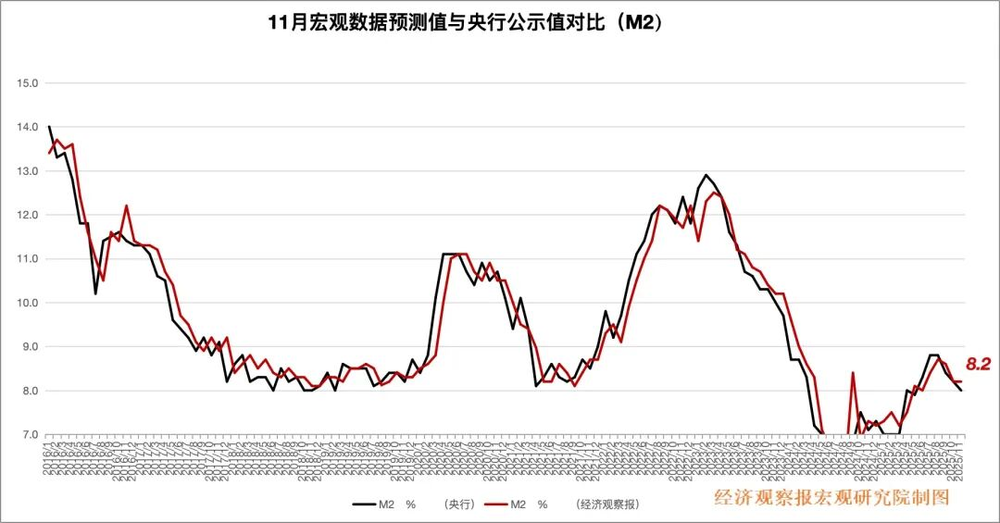 宏观数据显示,2025年11月CPI同比增速由上月的0.2%上升至0.7%;PPI从-2.1%下降至-2.2%;制造业PMI由50.0%下跌至49.2%;固投从-1.7%下降至-2.6%;11月新增人民币贷款3900亿元,月末贷款余额较上月回落约0.1个百分点;M2同比增速下降为8.0%。