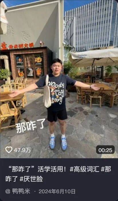 去年六月份,抖音博主鸭鸭米的一则视频爆火网络。“人生无非三个字,那咋了?”