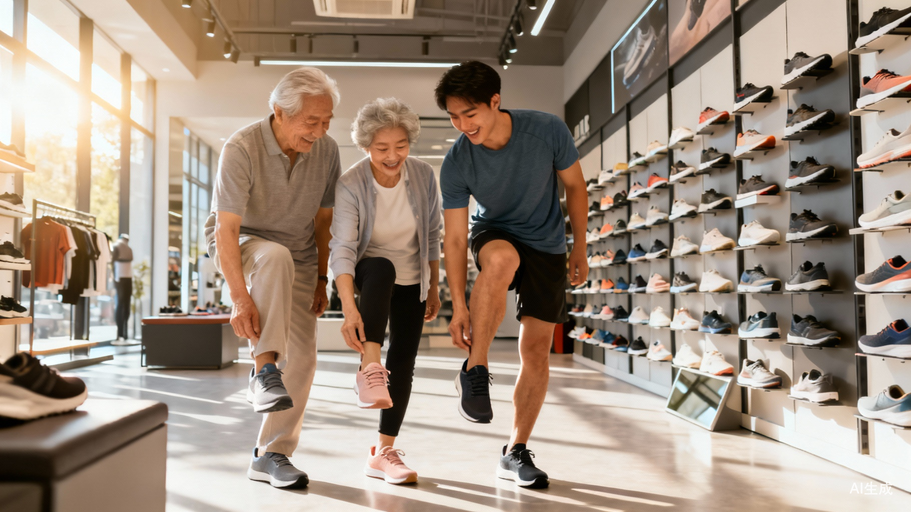 当下,主流运动品牌虽然已通过健步鞋、舒适鞋等产品线切入中老年市场,却更多是以「补充型品类」的方式存在,其核心资源、品牌叙事与技术创新,仍然围绕年轻人、运动人群展开。