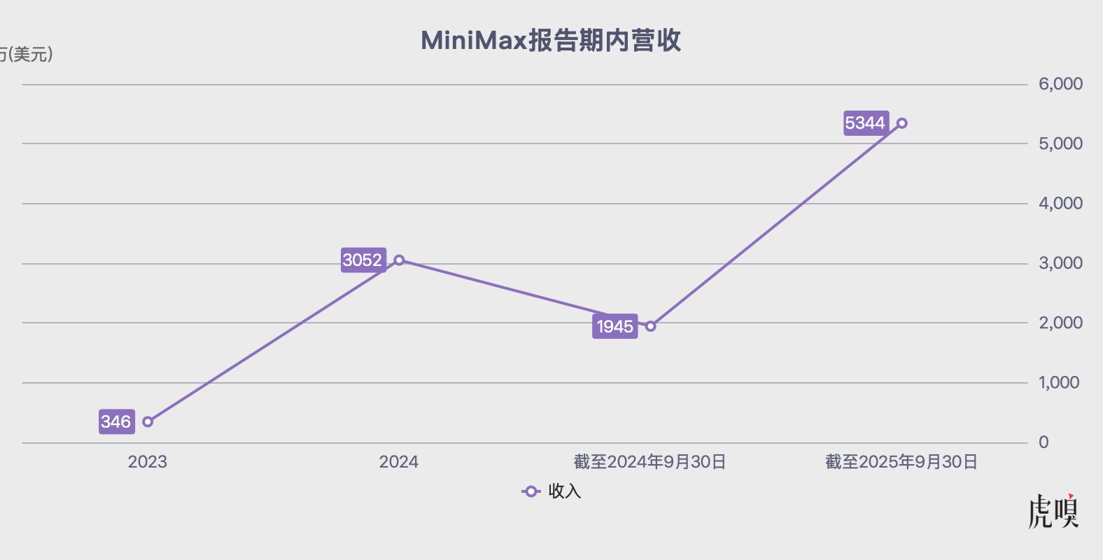 从MiniMax披露的招股书来看,前两年收入增长曲线尤为陡峭。2023 年和 2024 年,公司营收分别为 346 万美元(约合人民币 2436 万元)和 3052 万美元(约合人民币 2.1 亿元),同比增长 782.08%;截至 2025 年 9 月 30 日,MiniMax 实现营收 5344 万美元(约合人民币 3.77 亿元),同比增长174.76%。