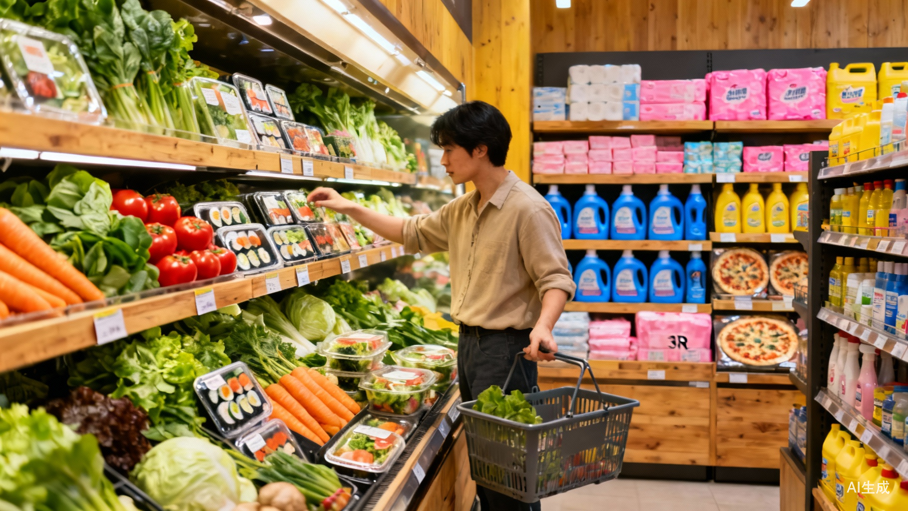 ·中部区:生鲜+3R晚餐区,将新鲜食材与预制菜相邻陈列,引导“原料+成品”的连带购买;