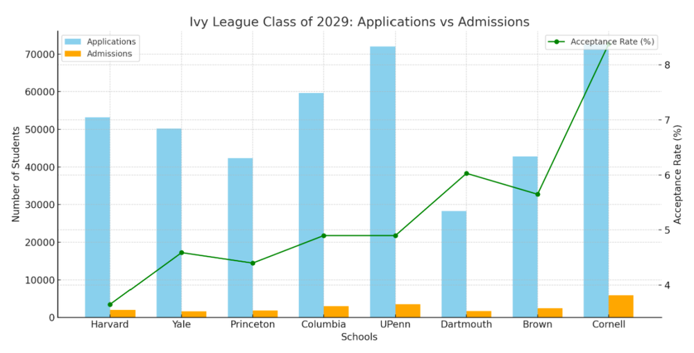 2025Fall申请季,藤校录取率继续探底:哈佛4.2%,普林斯顿4.4%,耶鲁4.8%。而在Common App系统里,托福110+的申请者比比皆是,4.0 GPA几乎成了「标配」。