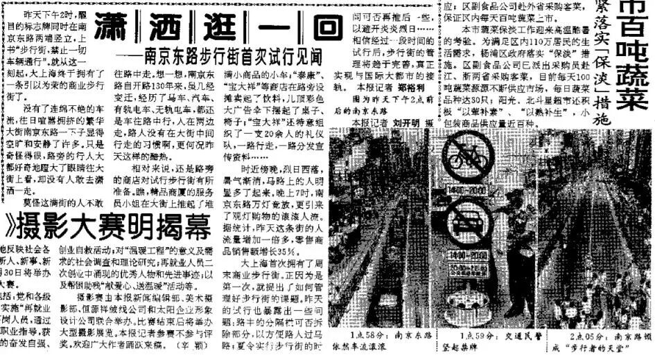 1995年7月16日《新民晚报》上关于南京路步行街试运行的报道