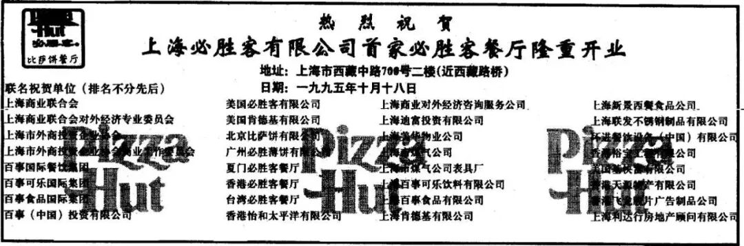 1995年,上海第一家必胜客在西藏中路700号开业了。