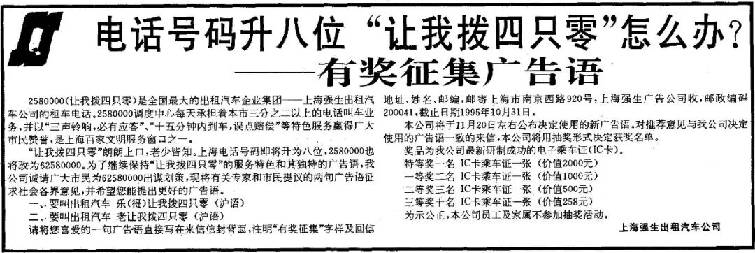 强生出租车公司还在报纸上做了征集广告,电话号码升八位“让我拨四只零”怎么办?