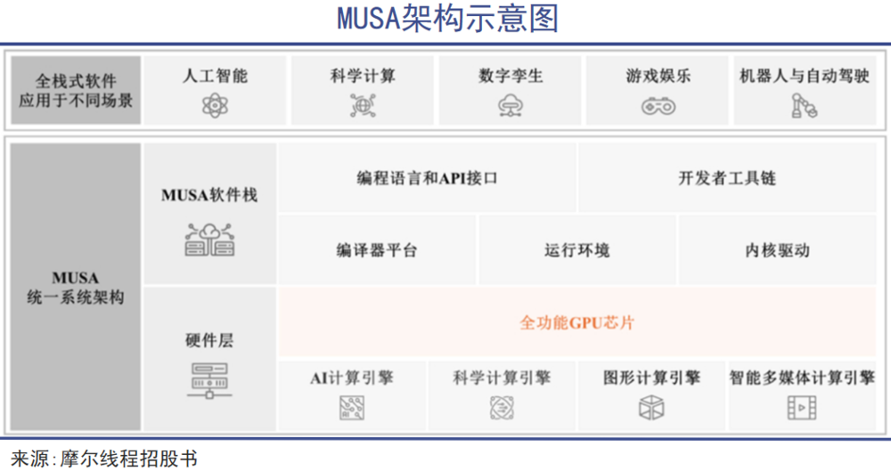 MUSA架构还可与英伟达GPU生态兼容,使开发者能够以较低成本利用国际主流生态代码资源。类似CUDA,摩尔线程也在构建以MUSA为基座的生态护城河。