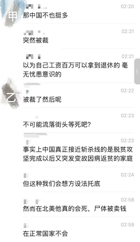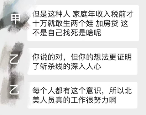 一位在国外工作的网友“甲”看完国内关于“斩杀线”的报道后表示: