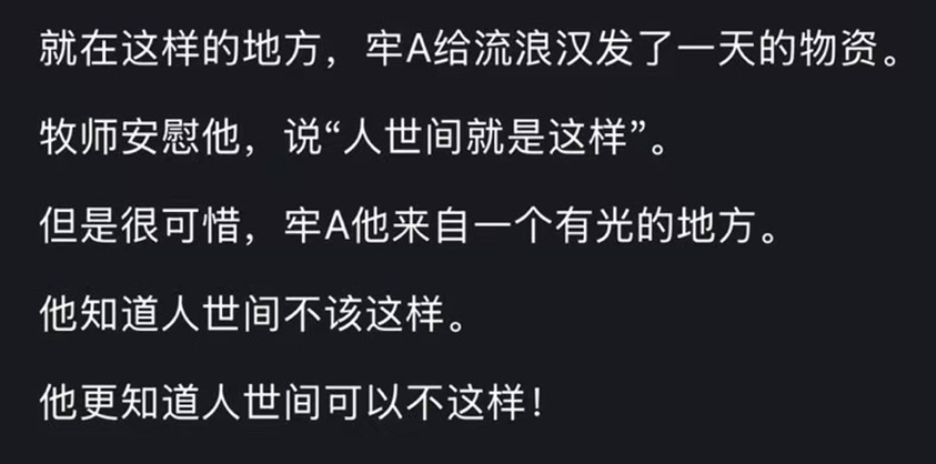 中国人很久没听说有人饿死或冻死了,更遑论牢A描述的人间地狱的惨状。说难听点,有些小区附近,流浪猫都饿不死。