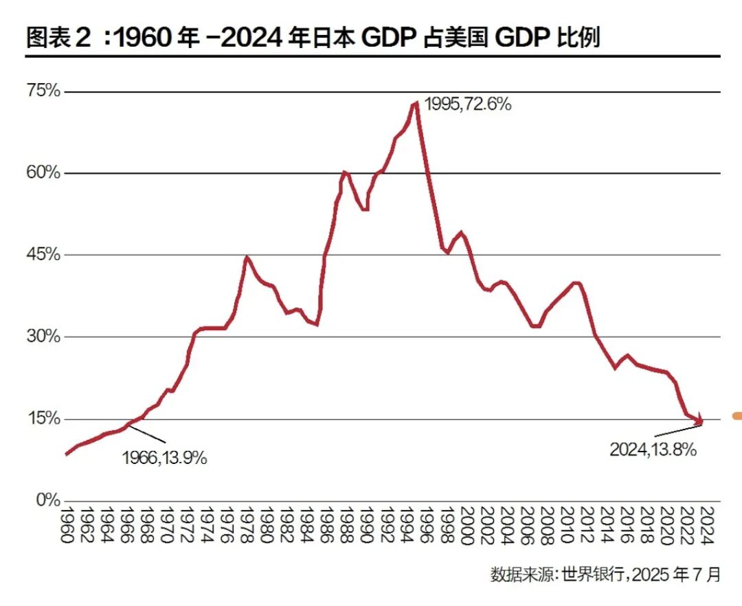 美国知名学者傅高义(Ezra F.Vogel)在1979年发表的著作《日本第一:对美国的启示》中,分析和肯定了日本在多方面的成功。但十年之后,日本的经济奇迹消逝,进入了长久的衰退和停滞不前。2024年日本的GDP只有美国的13.8%。