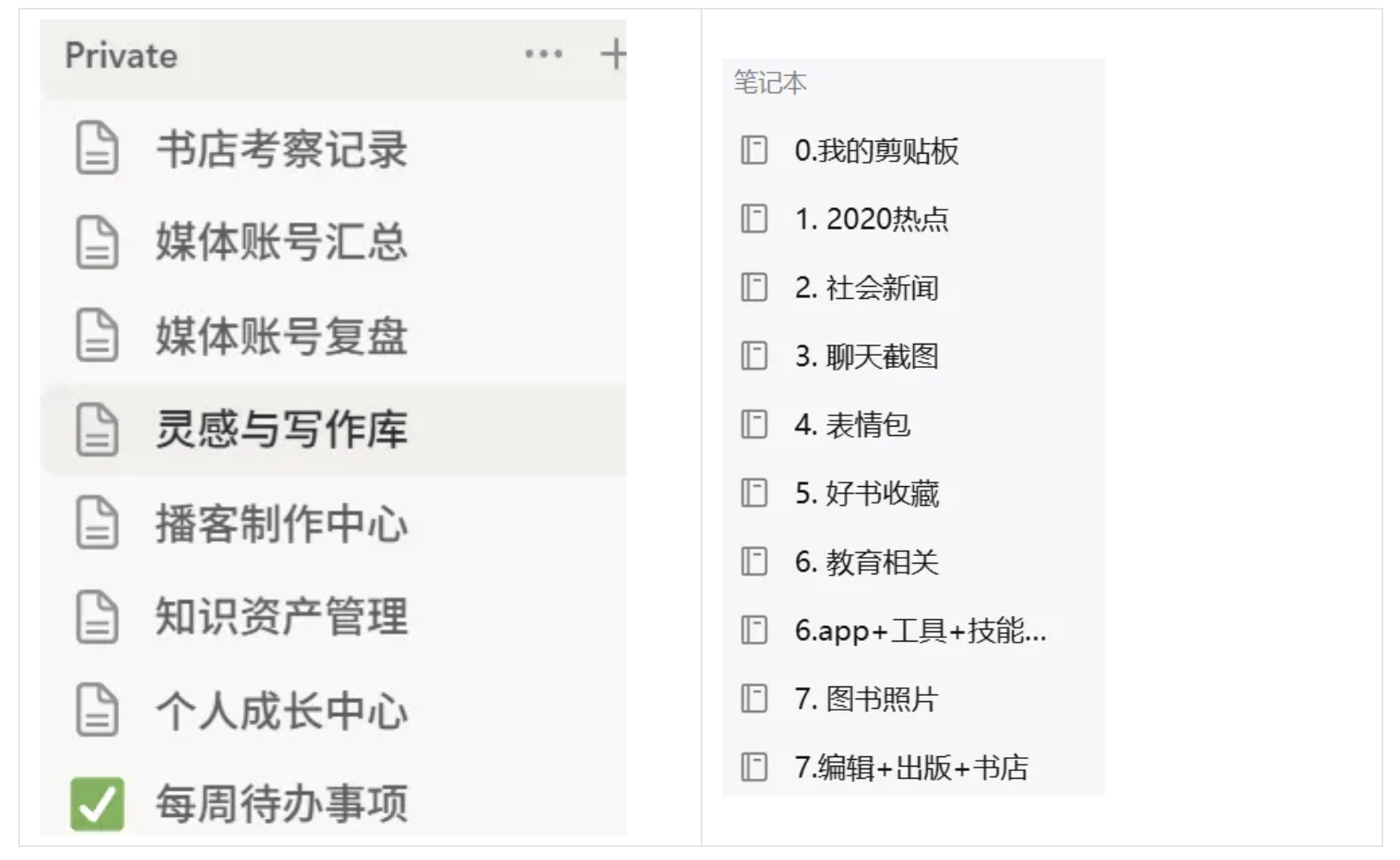 左边是notion的库,右边为印象笔记的文件夹。