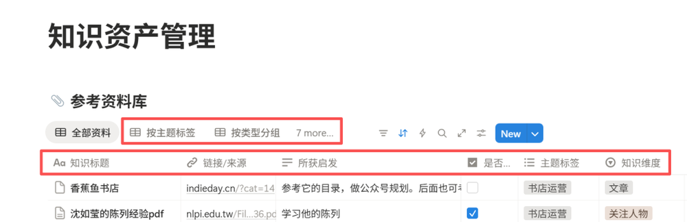 简单说,Notion是把excel可视化了。excel做了筛选后,能看到筛选的那一列的扩展内容,在Notion里就是把这些内容自动生成一个新的视图。你可以从各种维度生成各种视图。比如我的知识资产管理库,就有7个视图。