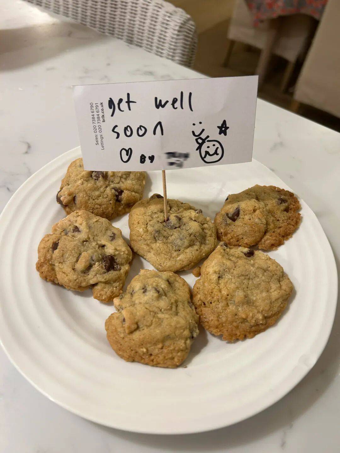 尽管两兄弟总是争吵打架,但他们都是底色温暖、很会表达爱的人。有一次弟弟病菌感染,生病好几周都还没好,一天晚上雇主带弟弟去看医生,哥哥提议做曲奇饼干给他们制造惊喜,做完后哥哥在曲奇上插上一支小旗,上面写到:XXX, get well soon(弟弟,快点好起来)。