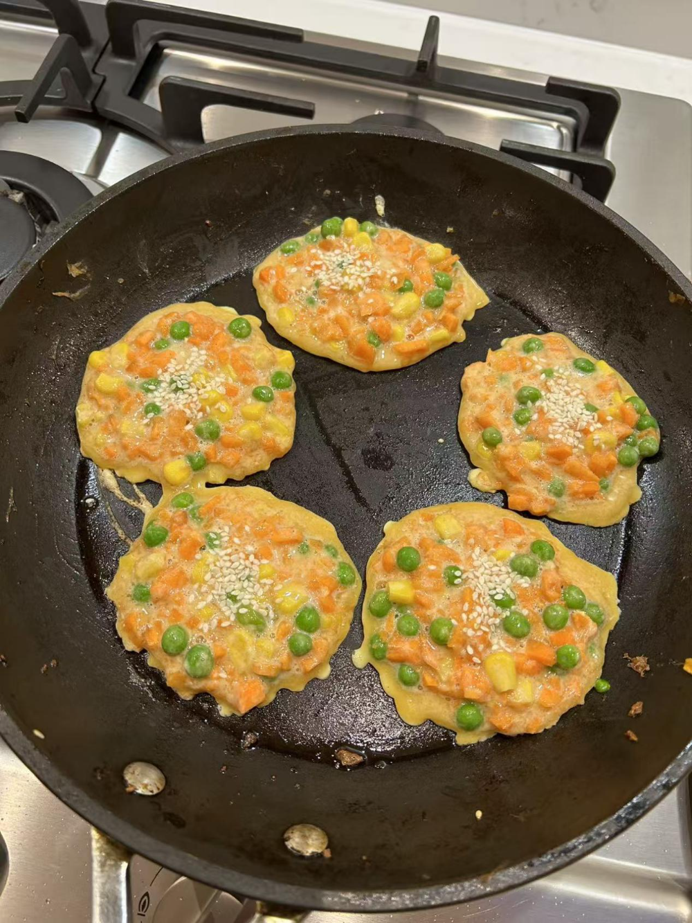 要满足他们的日常饮食实在太容易,但我偶尔也怀念中餐的烟火气。我后来在网上学着做蔬菜煎饼,咸咸香香深得我心,也获得大家的一致好评。我还尝试做过布丁、双皮奶、舒芙蕾……均以失败告终,但他们总会捧场。
