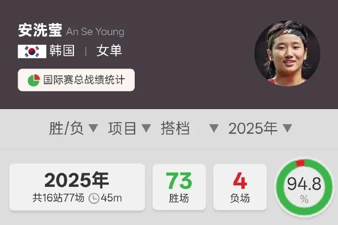 这是安洗莹今年的战绩。而纵观她的职业生涯,她一路都在改写韩国羽毛球的历史。