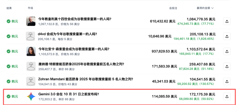 进入11月,这哥们更是杀疯了,先后押注了“Gemini 3.0会在11月15日之前发布吗?”、“Gemini 3.0会在11月22日之前发布吗?”、“Gemini 3.0会在11月23日之前发布吗?”。