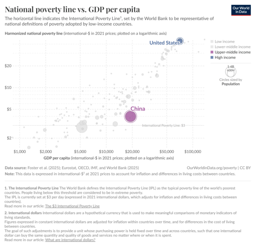 无论是每人每天2.15美元还是每人每天3美元,国际贫困线是按低收入国家标准设定的,是一个极低的基准。