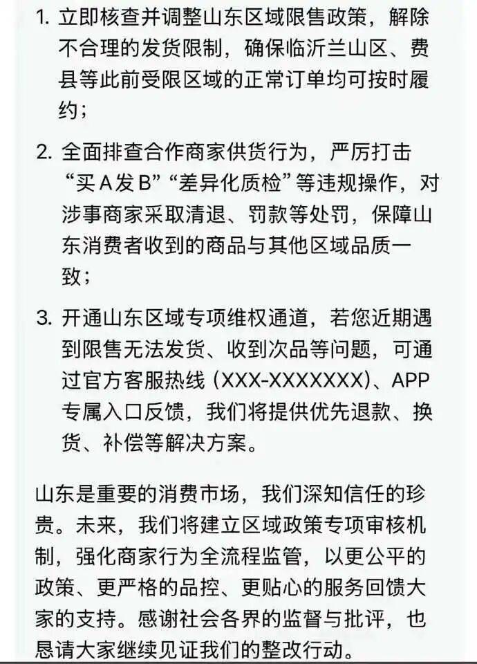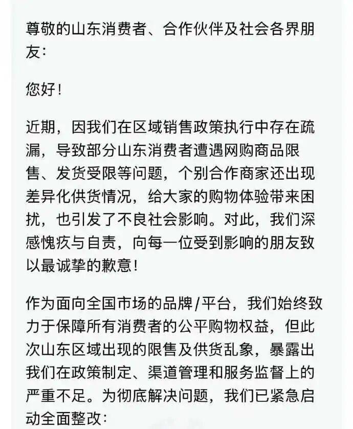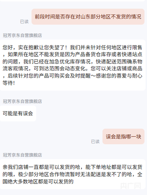 客服或许没有权限透露敏感的供应链条细节,但对消费者而言,这样的处理方式很难接受:即使客服所说为真,所有山东网友也值得一个公开正式的解释,而不是私信追问才能要来的交代。
