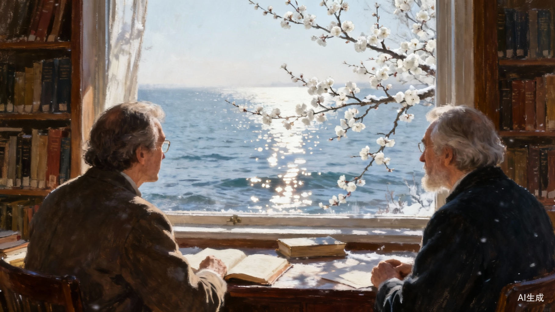 不久前,一位即将退休的教授走进了我的研究室。窗外,冬末的柔光漫过海面,粼粼波光铺展至天际;早开的白梅虬枝苍劲,清冷的暗香随海风漫进来,与光影交织成一幅静谧的画面。
