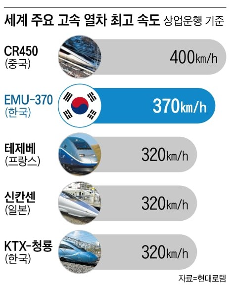 排名第二的是韩国EMU-370,虽然车还没开始造,但韩媒已迫不及待地将其放到榜单上。