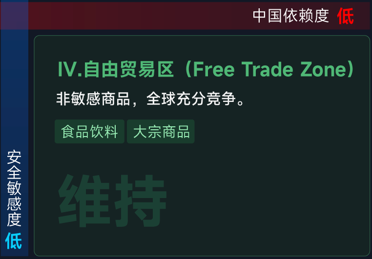 这些东西既不涉及国家安全,也不全靠中国供应。在这片“自由贸易区”,维持着老一套“成本优先、自由贸易”的商业逻辑。