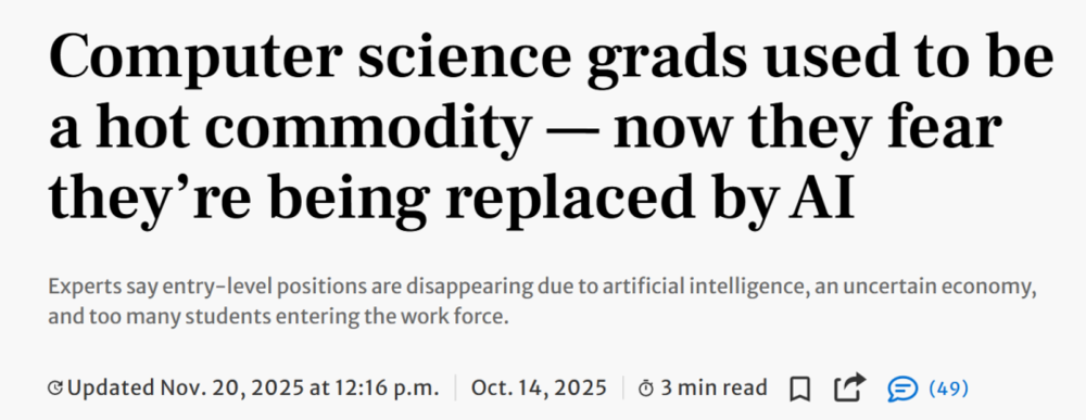 而且AI也没有给年轻的CS毕业生们留下丝毫活路。