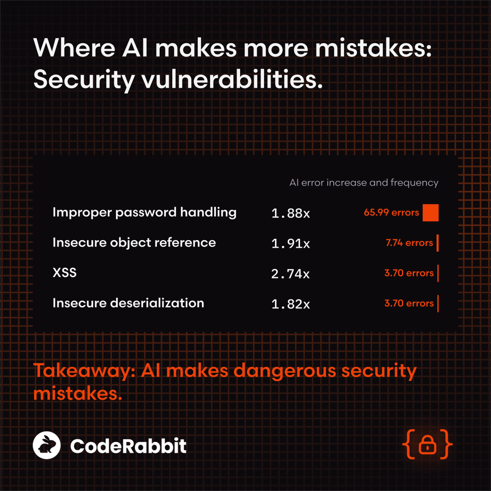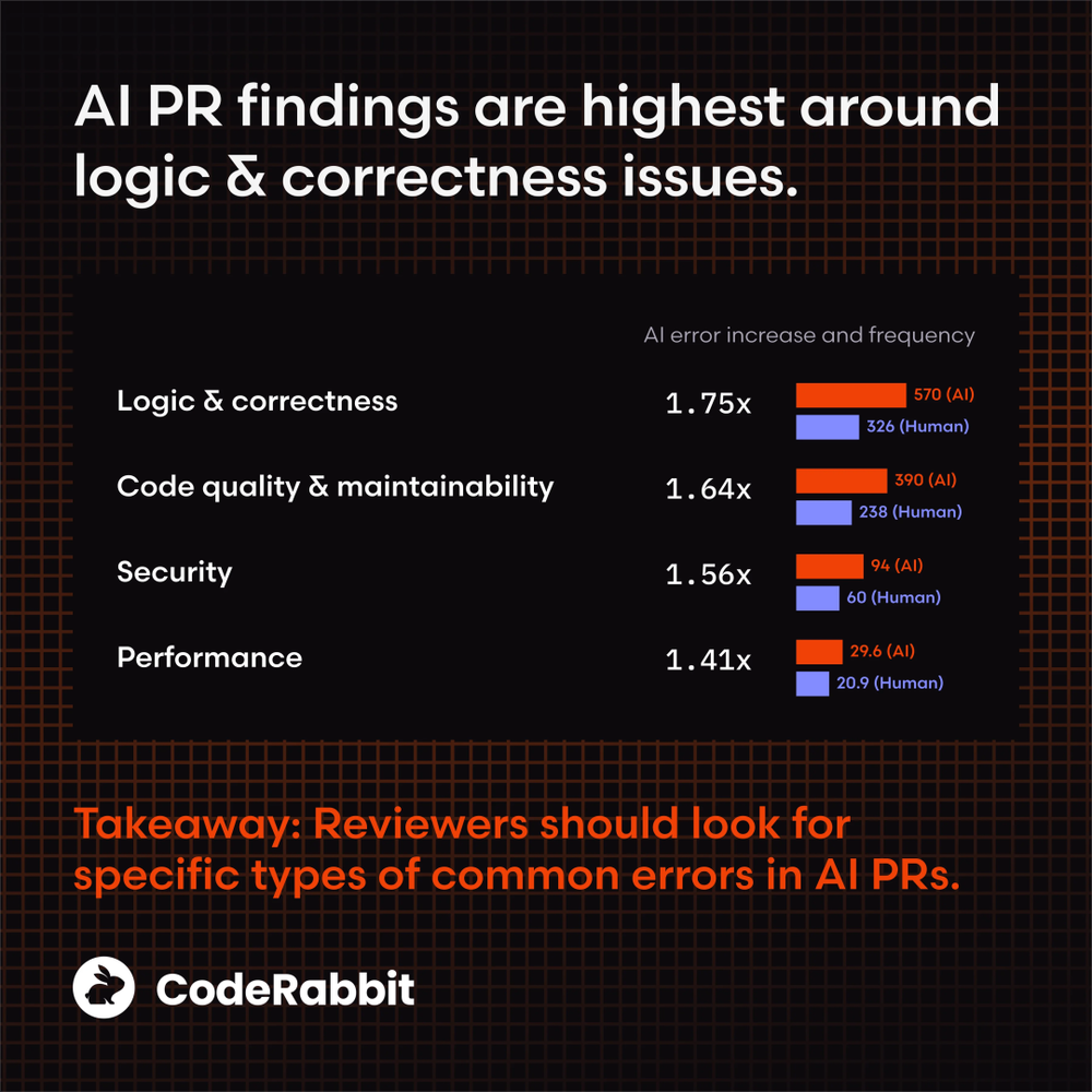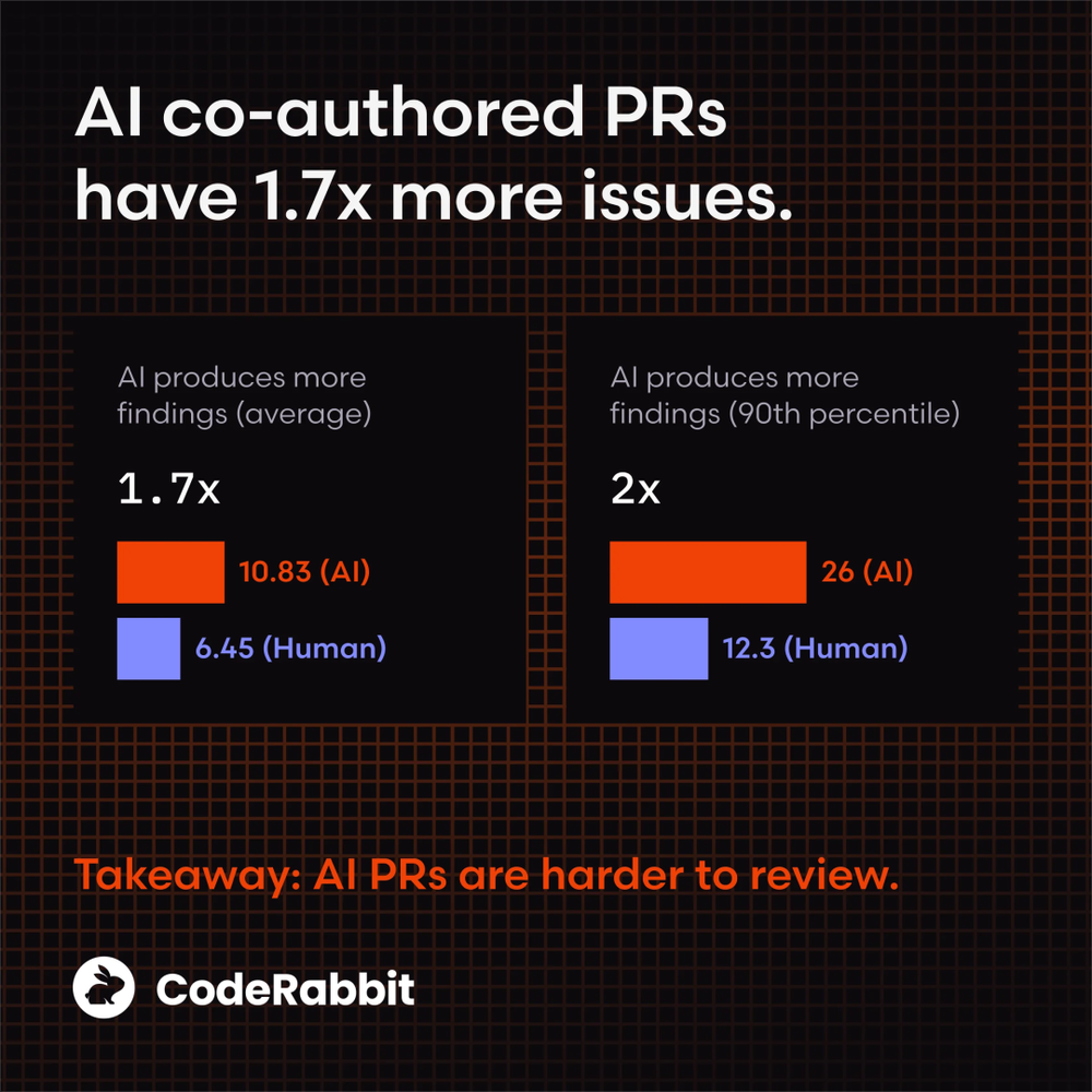 CodeRabbit的AI总监David Loker表示:AI确实加速了产出,但也引入了可预测、可衡量的弱点。